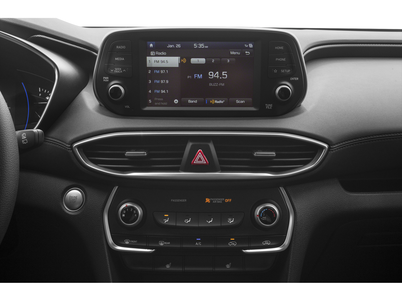 - Radio: AM/FM/MP3 Display Audio -inc: 7" screen, Apple CarPlay & Android Auto, Bluetooth hands-free w/wireless audio streaming, voice recognition, steering wheel audio, cruise and phone controls, dual front and rear 2.1 amp USB charge ports, SiriusXM, HD Radio and Blue Link connected car system